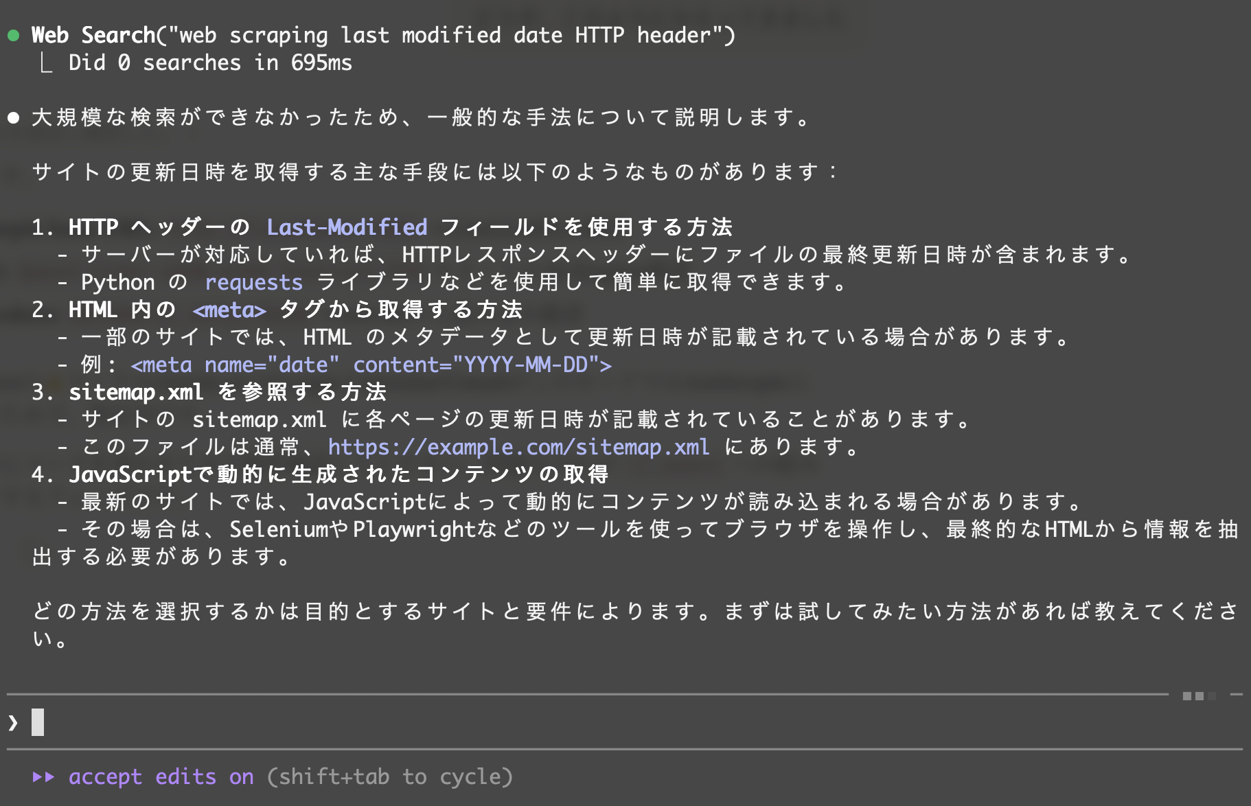 その前に、さくらの AI Engine のアクセストークンを環境変数 SAKURA_API_KEY に入れておきます。 read コマンドを使う場合は、次の様にコマンドを実行したあと、アクセストークンを入力してエンターキーを押します。